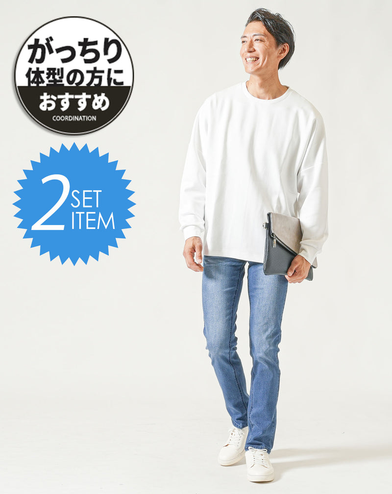 着こなしの提案としては、ホワイトのTシャツやシャツをインナーに合わせ、デニムコートのシャープなシルエットを引き立てるスタイルがオススメです。また、パンツはスリムフィットのチノパンを選ぶことで、全体のバランスを保ちながら、クリーンな印象を演出できます。シューズはシンプルなスニーカーを選ぶと、カジュアルさを引き立て、日常使いとしても最適です。コートの軽やかさとカットソーの快適さが一体となったこのアイテムは、シャープなカジュアルスタイルを求める30?50代男性にピッタリの選択です。
