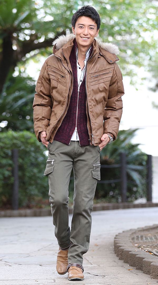 中綿ジャケット スタンドニット シャツ カーゴパンツ snp_zs0111のコーディネート例