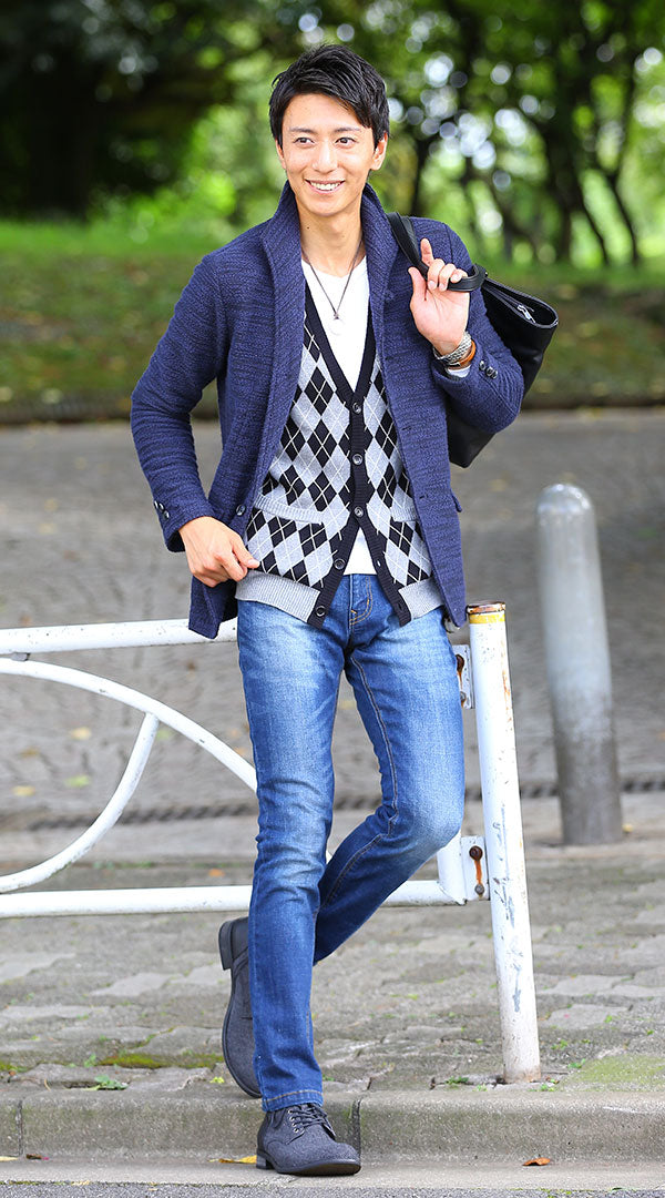 クールなスタイルを求める30?50代男性に向けた「snp_gb0848」のコーディネートは、ジャケット、カーディガン、カットソー、パンツという組み合わせが特徴です。この商品は、職場からカジュアルなシーンまで幅広く対応できるversatileなファッションアイテムです。ジャケットはシンプルなデザインながら、体のラインを美しく見せるシルエットが魅力。カーディガンは軽やかで重ね着にも最適で、さらりと羽織ることでスタイルに柔らかさをプラスします。カットソーは肌触りが良く、快適な着心地を提供。パンツはリラックス感とスタイリッシュさを兼ね備え、あらゆるトップスとの相性が抜群です。