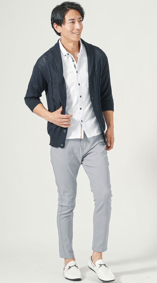 アーバンなスタイルを求める30?50代男性に最適なコーディネートの提案です。黒ジャケットは、シンプルながらも上品な雰囲気を醸し出し、ビジネスシーンやカジュアルな外出時にも幅広く活躍します。白ポロシャツとの組み合わせは、清潔感とフレッシュさを感じさせ、特にこの季節にぴったりの色合いです。さらに、ブルーデニムパンツはリラックスした雰囲気を与えながらも、どんな場面でも対応できる柔軟性を持っています。このコーディネートは、全体のバランスを考慮したデザインにより、オフィスから週末のカジュアルな集まりまで多彩なシーンに対応します。例えば、ジャケットの下にネクタイを加えればビジネスカジュアルに、デニムをスニーカーに変えれば休日のアクティブスタイルに早変わり。多様な着こなしが可能なこのアイテムは、あなたのワードローブに欠かせない存在になるでしょう。
