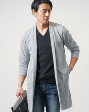 オフ白ロングカーディガン 黒長袖Tシャツ インディゴデニムパンツ 白スニーカー snp_ni1359のコーディネート例