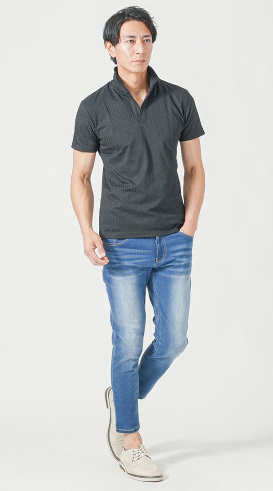 このベージュ長袖シャツは、40代・50代の男性に特におすすめの一着です。上質な素材で仕立てられたこのシャツは、シンプルでありながらもスマートなデザインを持ち、カジュアルからビジネスシーンまで幅広く対応します。また、白の半袖VネックTシャツを重ねることで、爽やかさと清潔感を演出し、Vネックのデザインが首元をすっきりと見せてくれます。ネイビーテーパードデニムパンツはスリムなシルエットながら動きやすく、どんなスタイルにもマッチします。上品なネイビーが全体のコーディネートを引き締め、さらにベージュのチャッカブーツが全体のトーンを整え、エレガンスを加えます。このコーディネートは、春や秋のお出かけに最適で、簡単におしゃれでかっこいい印象を与えることができます。シンプルながら個性を引き立てる着こなしを楽しんでみてはいかがでしょうか。