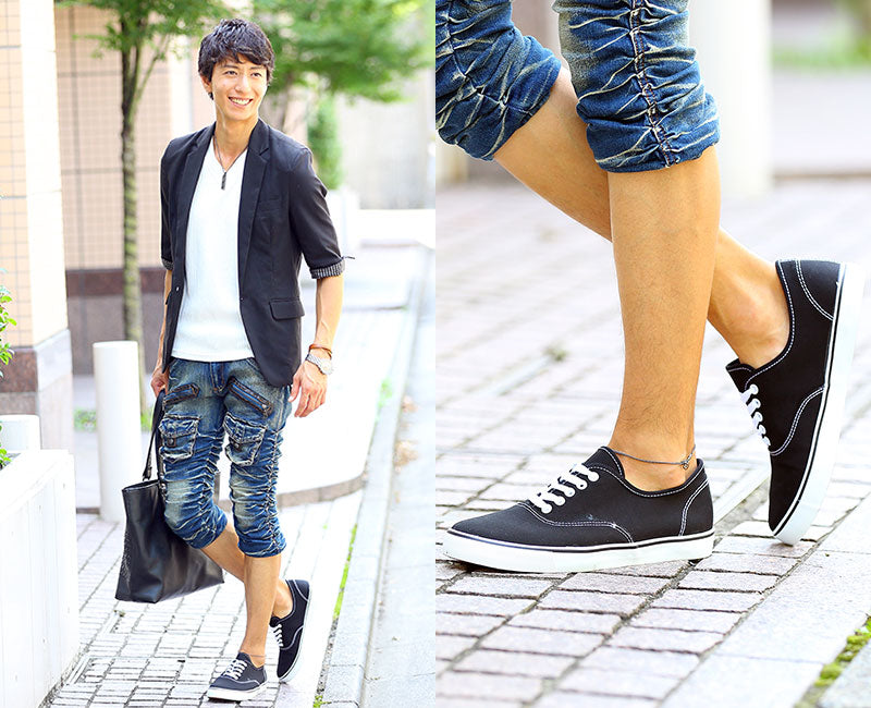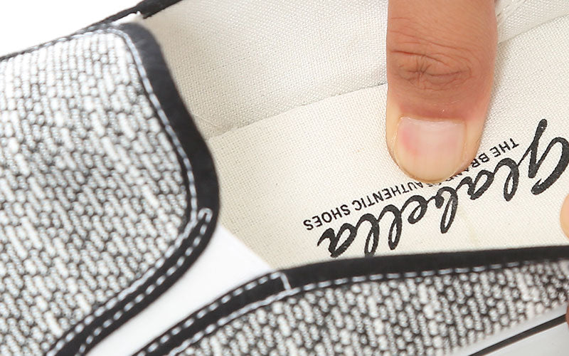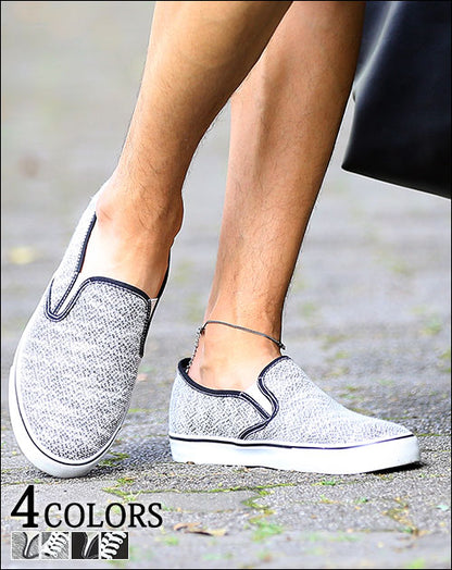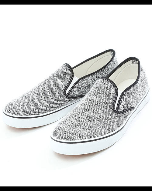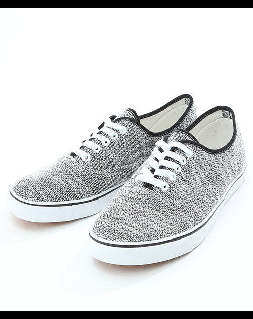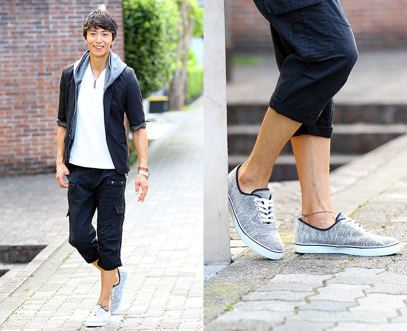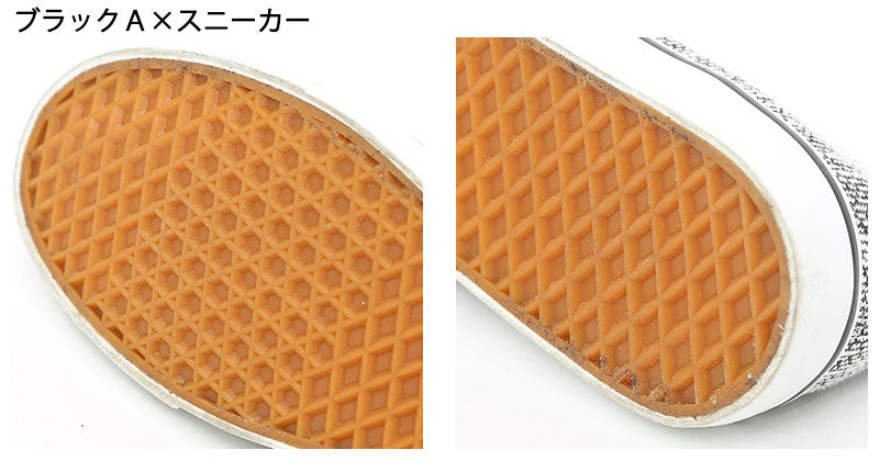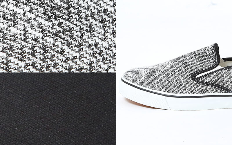 ホワイトとブラックのミックス地でパイルのような柔らかさと丈夫で型が崩れにくいキャンバス地の2パターンの生地感に!また、厚みのあるしっかりとしたタフなソールを使い、大人っぽい着こなしもサポートしてくれます!