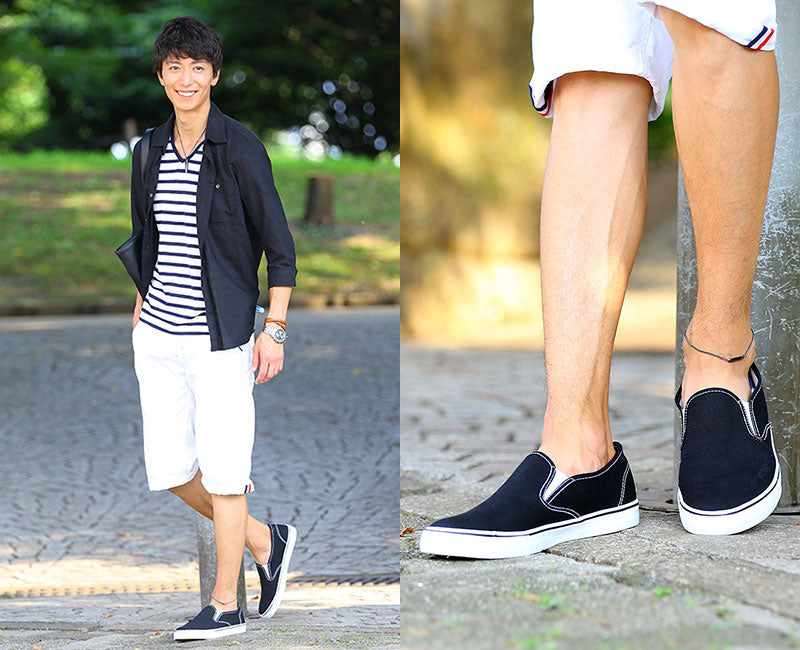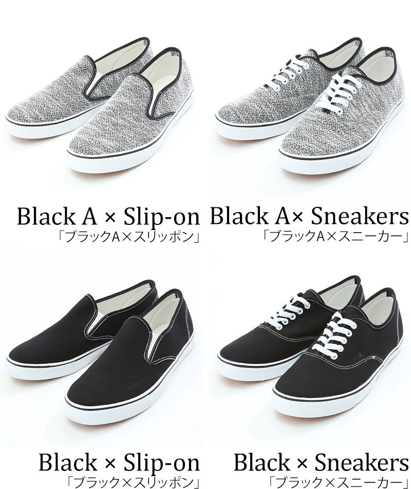 スニーカーとスリッポンの2タイプから選べるこのシューズ。