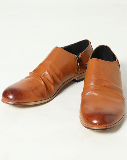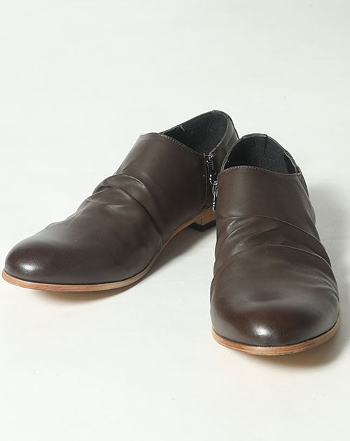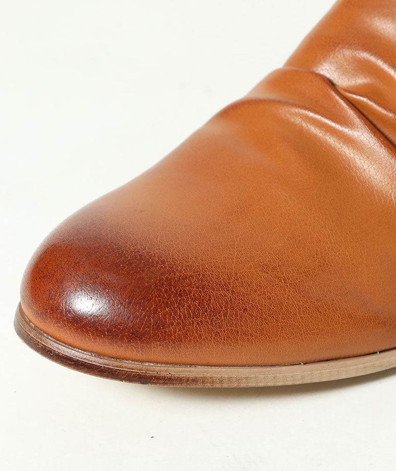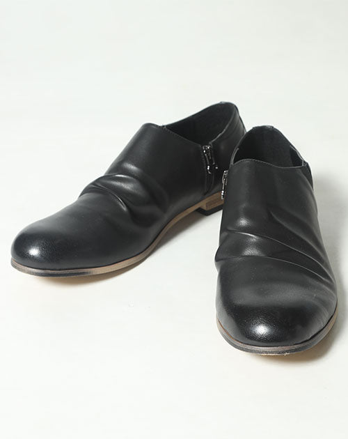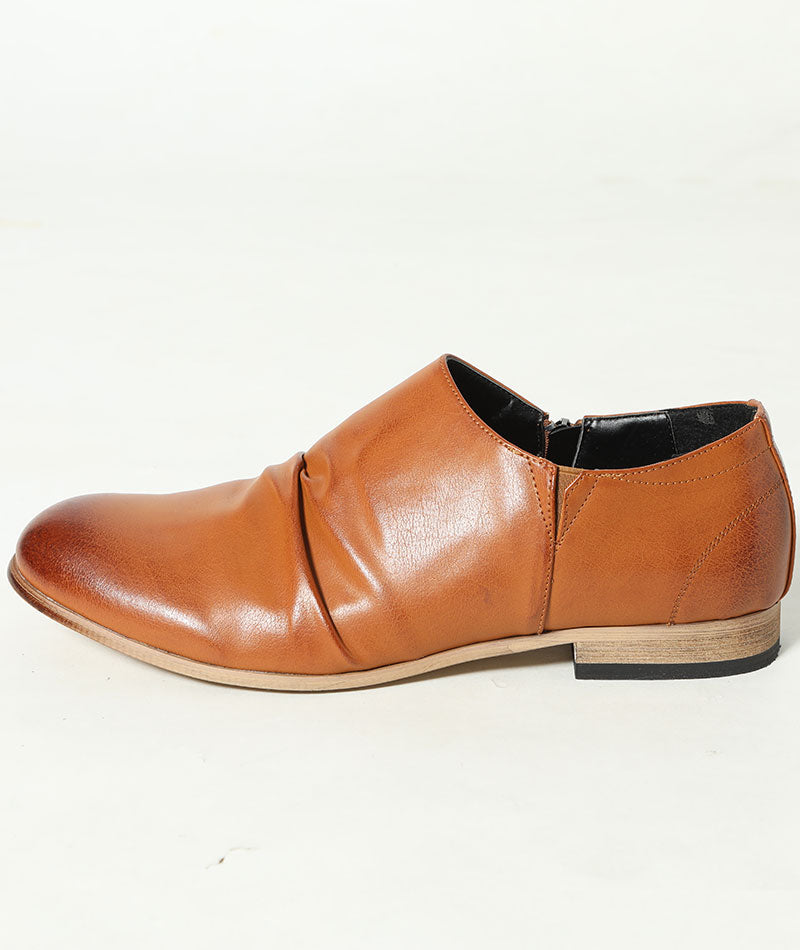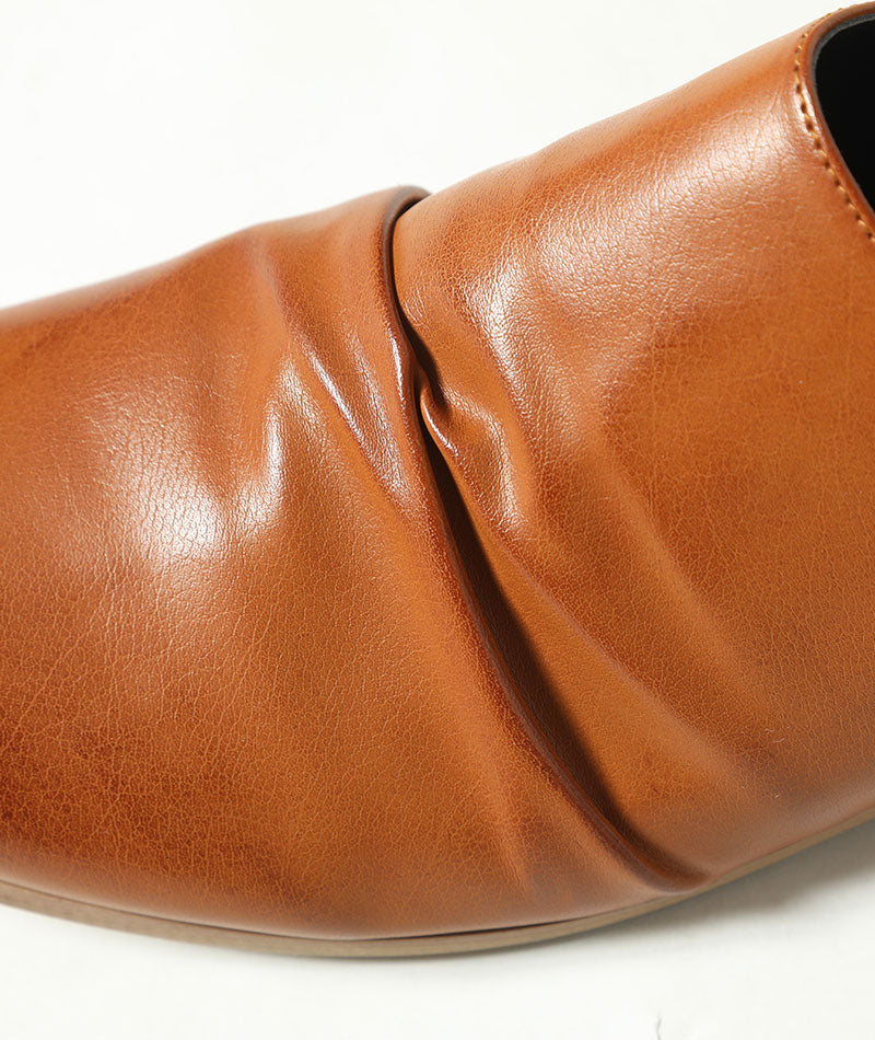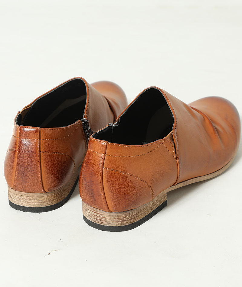 「サンプルセール品」PUレザー焦がしドレープ加工サイドジップシューズ