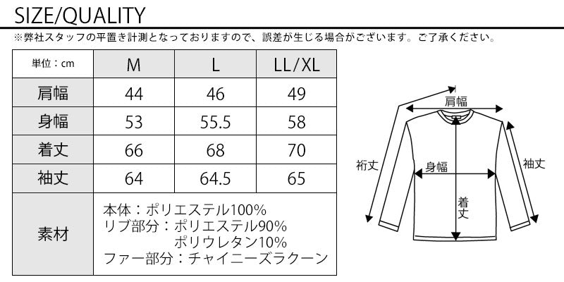 フェイクムートンは見た目・風合いともに天然のムートンに似せて作られたもので、フェイクスエードとフェイクファーの組み合わせでできているんですね♪虫やカビの害を受けにくいなど、天然のムートンよりお手入れが簡単なので1着持っていると3年は着ることが出来ますよ!!