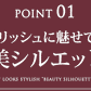 着丈を気持ち短めに作っているのも美シルエットを作る秘密でもあるんです。袖と裾部分にはリブを使い、ダラッと感を解消することでスマートな印象を作ってくれるんですね!さらに着丈をちょっとだけ短く作ることで脚長効果が生まれ、よりスタイリッシュに見えるようになっているんです。
