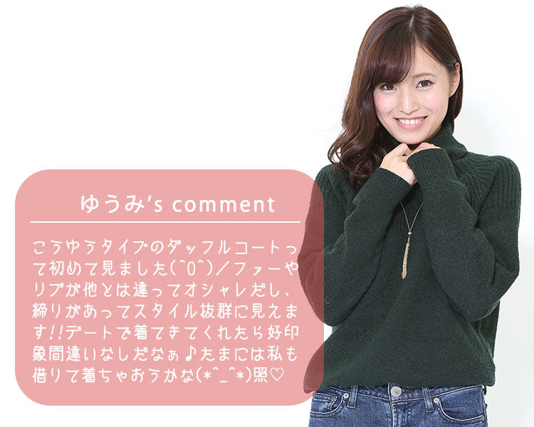なのでMZガールのゆうみにこのフェイクムートンダッフルコートの印象について聞いてみました♪