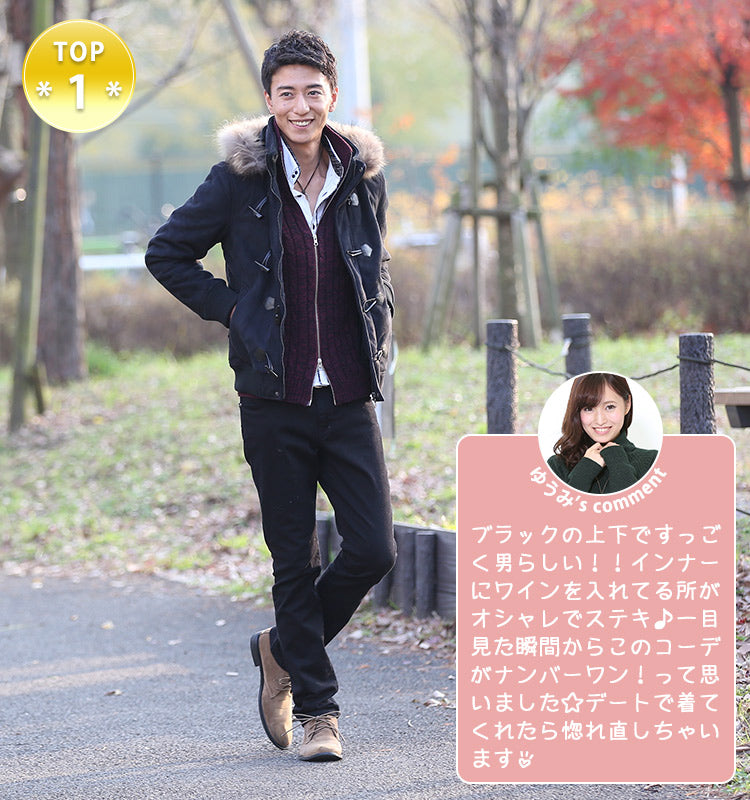 このコートの魅力や女のウケの良さ、人気っぷりが分かった所で次はコーディネートをご紹介!!