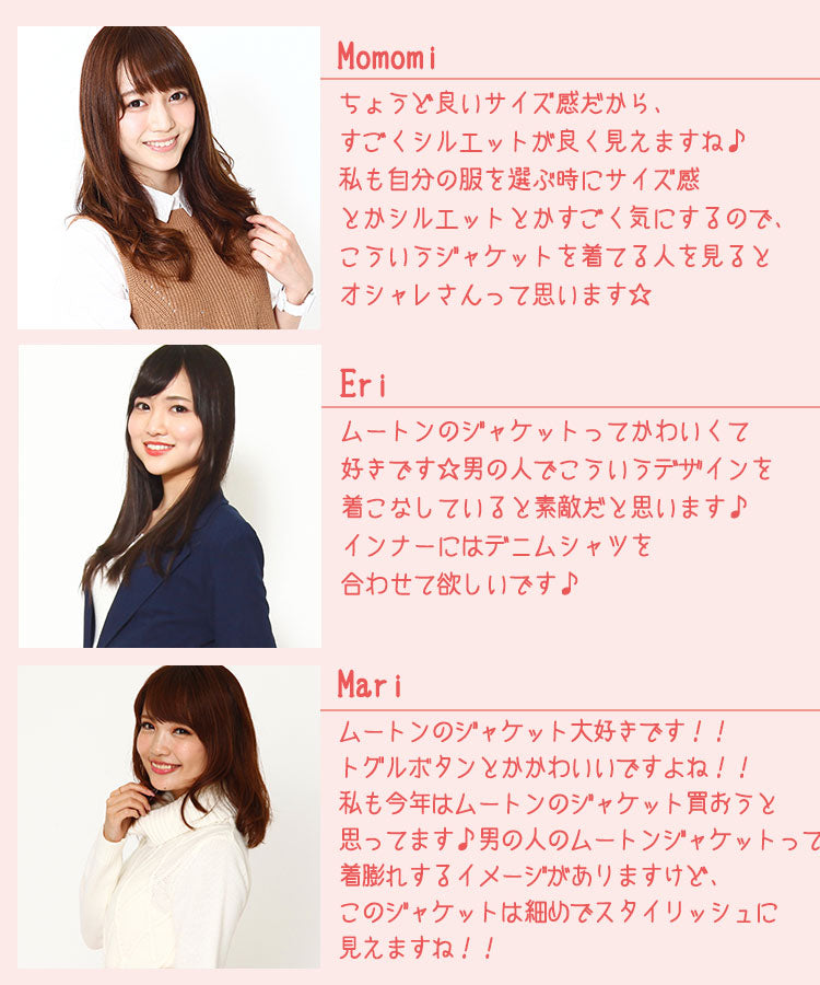 フェイクムートンダッフルコートの良さが分かったところで、気になるのは女の子目線ですよね!
