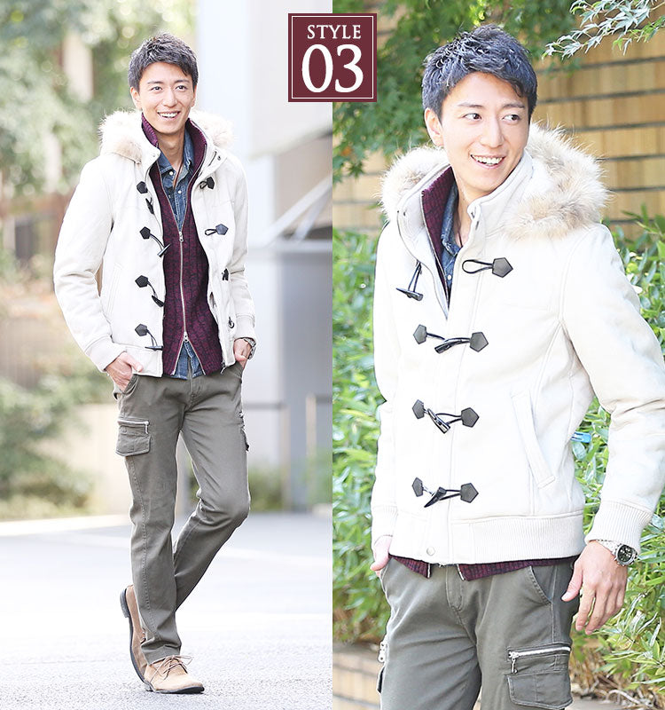 真冬のオシャレを暖かく、さらにスリムに魅せてくれるフェイクムートンダッフルコートでコーディネートを楽しんじゃてくださいね♪