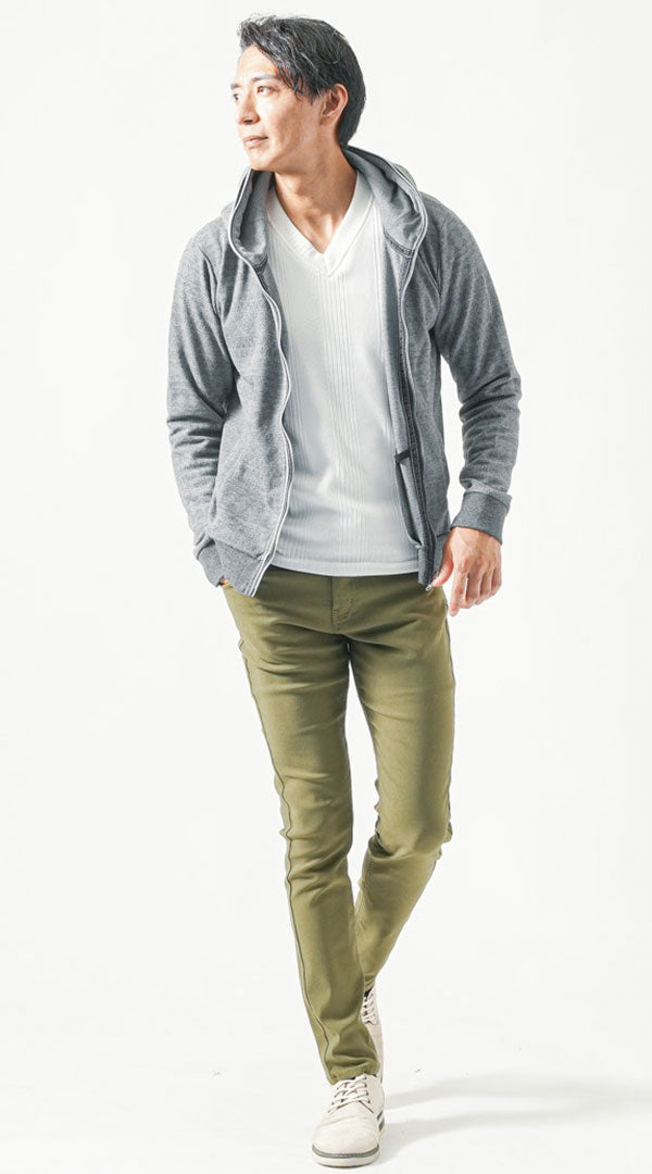 メンズスタイルがおすすめするグレー×カーキの大人コーディネートをご紹介。落ち着いたグレーと上品なカーキの組み合わせは、30代40代50代の男性にぴったりの洗練されたカラーリングです。グレーのシャツにカーキのチノパン、カーキのジャケットにグレーのパンツなど、どちらを主役にしても品のある仕上がりに。程よいゆとりのあるシルエットで体型変化をさりげなくカバーしながら、職場での会議や休日の家族とのお出かけでも好印象を与える大人の余裕を演出できます。昔のタイトな着こなしから、今の自分に似合うリラックス感のあるスタイルへとアップデートすることで、無理のない自然体のおしゃれが楽しめます。春夏秋冬を通じて活用できる万能な色合わせで、Tシャツ・ポロシャツ・ニット・アウターまで幅広いアイテムでコーディネートをご提案しておりますので、まずは気になるスタイルからチェックしてみてください。
