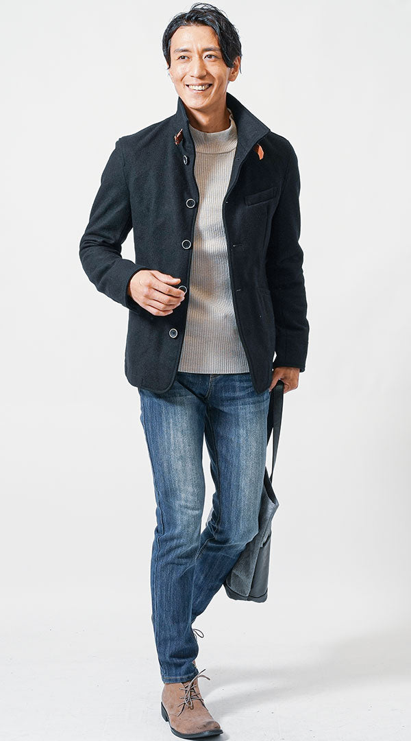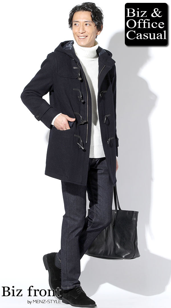 ネイビーダッフルコートは、30代40代50代の大人メンズが秋冬のコーディネートで取り入れやすい定番アウターです。昔ながらのタイトなシルエットではなく、程よいゆとりのあるデザインが主流となった今、肩回りや胴周りに余裕を持たせたダッフルコートなら体型変化を気にせず着こなせます。ネイビーカラーは通勤シーンでも休日の家族とのお出かけでも使い回しが利き、インナーにニットやシャツを合わせるだけで職場の同僚や奥様からも好印象な大人のきれいめカジュアルスタイルが完成します。トグルボタンが特徴的なダッフルコートは、無地のシンプルなアイテムでありながらもクラシックな魅力があり、年相応の落ち着いた雰囲気を演出してくれます。豊富なコーディネート例から、まずは気になるスタイリングをチェックしてみてください。