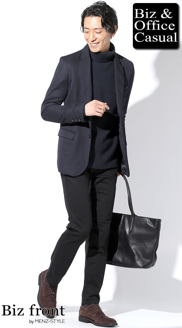 ネイビーテーラードジャケット×黒パンツのメンズコーデは、30代40代50代の大人男性にとって最も失敗しにくい王道の組み合わせです。昔のような細身シルエットにこだわる必要はなく、今は程よいゆとりのあるシルエットが主流で、お腹周りが気になる体型でも自然にカバーしてくれます。ネイビーと黒の落ち着いた配色は、職場からの印象も良く、通勤スタイルから休日のお出かけまで幅広いシーンで活躍します。カジュアルからビジネスまで対応できる着回し力の高さも魅力で、シャツやニット、靴を変えるだけで印象をガラリと変えることができます。年相応の大人らしさを演出しながらも堅すぎず、きれいめカジュアルな雰囲気を簡単に作れるため、服選びに迷いがちな方にもおすすめです。まずは気になるコーディネートから、あなたのライフスタイルに合うスタイルをチェックしてみてください。