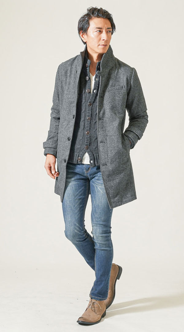 30代40代50代に向けたロングコートメンズコーデは、大人の品格と体型カバーを両立させる春秋冬の定番スタイルです。昔のタイトなシルエットとは違い、今のロングコートは程よいゆとりで肩回りや胴周りを自然にカバーしながら、縦のラインを強調して全体をすっきり見せてくれます。チェスターコートやステンカラーコート、トレンチコートなど、通勤時にスーツの上からでも休日のカジュアルスタイルにも合わせやすいデザインが豊富で、職場や家族からも「きちんとした大人の男性」という好印象を与えられます。春の薄手素材から冬の防寒性重視まで、季節に応じた素材選びと、ジャケットやニット、シャツとの重ね着バランスがポイントになります。まずは今の自分に似合いそうなロングコートの着こなしから気軽にチェックしてみてください。