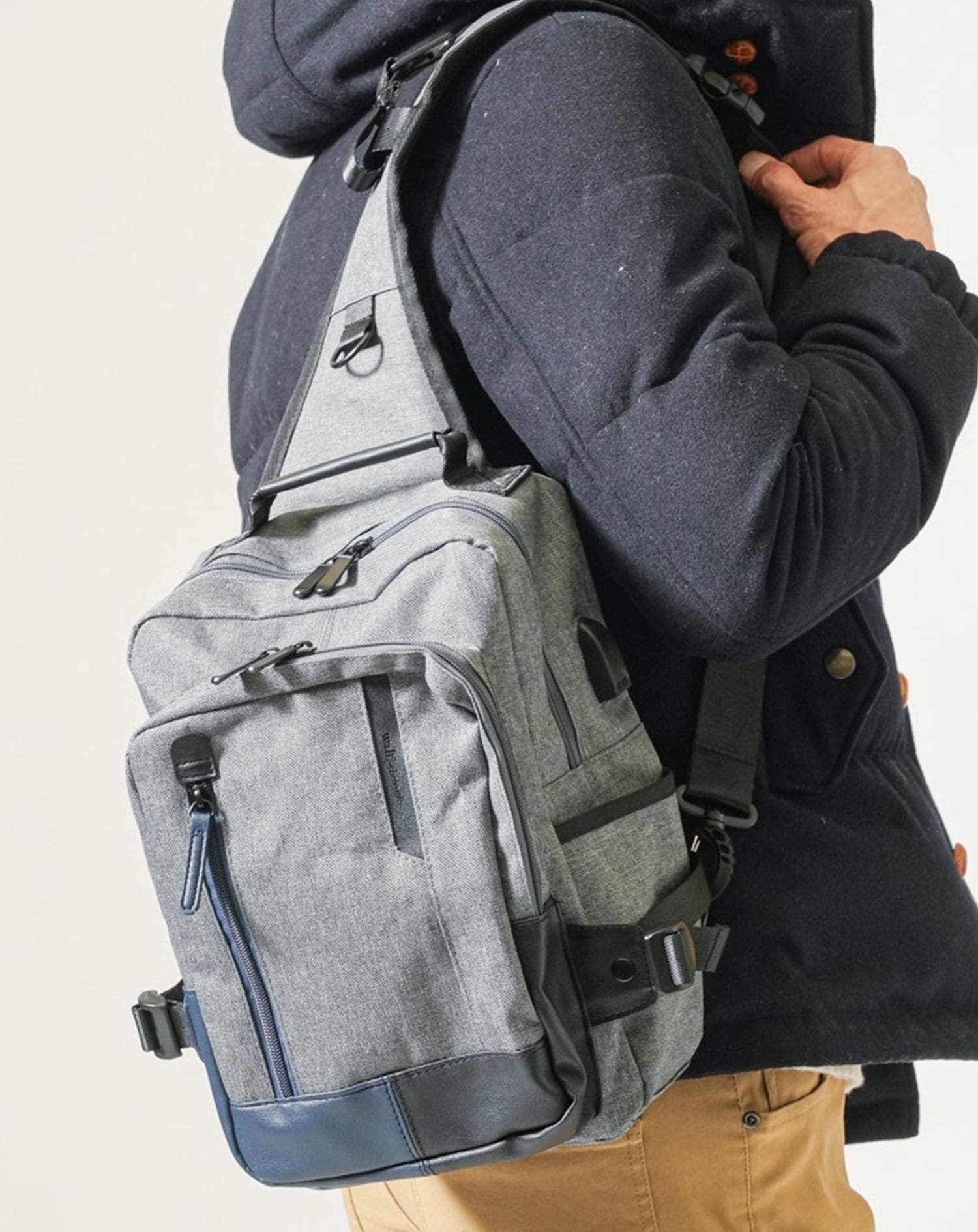 斜め掛けバッグは、両手が自由になり実用性が高いクロスボディバッグとして30代から50代の男性に人気のアイテムです。通勤の行き帰りや休日の外出時に、スマートフォンや財布、鍵などの必需品をスマートに持ち運べるため、職場や家族からも「きちんとした大人」という好印象を与えます。従来のウエストポーチよりもスタイリッシュで、リュックよりもフォーマルな印象を演出できるのが魅力です。体型の変化が気になる年代でも、斜め掛けスタイルなら体のラインを自然にカバーしながら、程よいこなれ感を演出できます。シンプルなTシャツやシャツスタイルに合わせるだけで、カジュアルからきれいめまで幅広いコーディネートに対応し、今らしい大人のおしゃれを簡単に完成させることができます。まずは自分の普段のスタイルに合う色やサイズから、お気に入りの一点を見つけてみてください。
